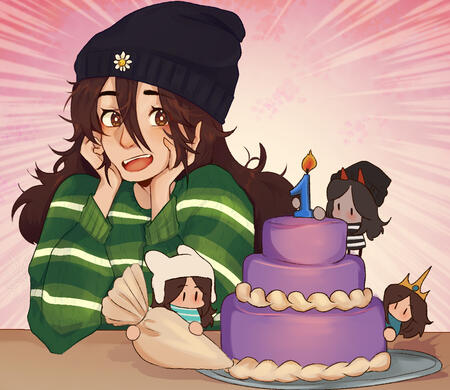 I'm a digital artist, I use clip studio paint and a Wacom Cintiq 22in. I've been doing digital art for roughly 9 years! I also do content creation as well as having a job so I might be a little slow to get started on commissons!